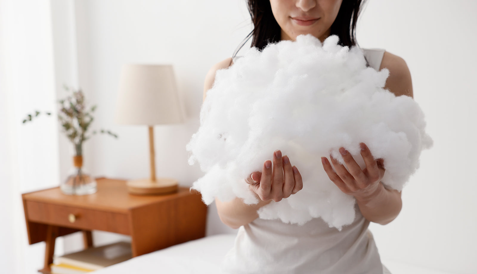 3年間、商品の改善を続けて辿り着いた企業秘密の中綿は、驚くほど膨らみが早く「しっかりしている」のが特長です。同じ枕でも、中身が違えば使い心地がまるで変わります。