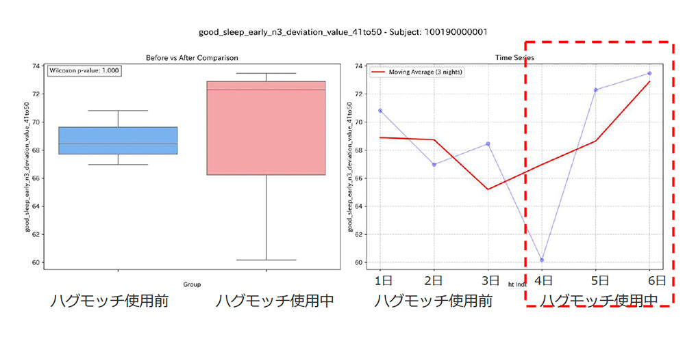 ハグモッチ使用中の方が熟眠度が増加傾向