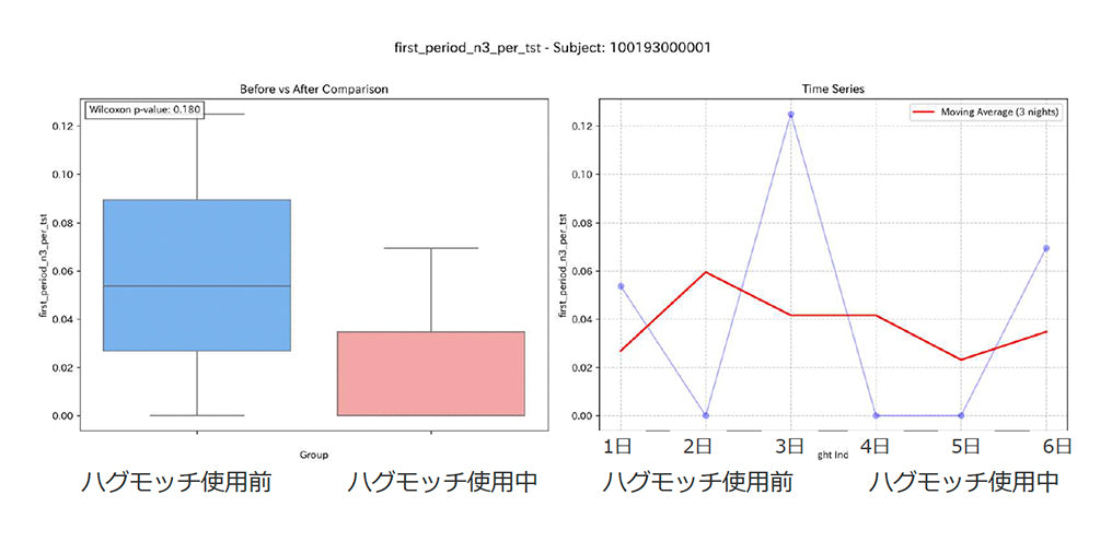 ハグモッチ使用により深い睡眠割合は減少傾向