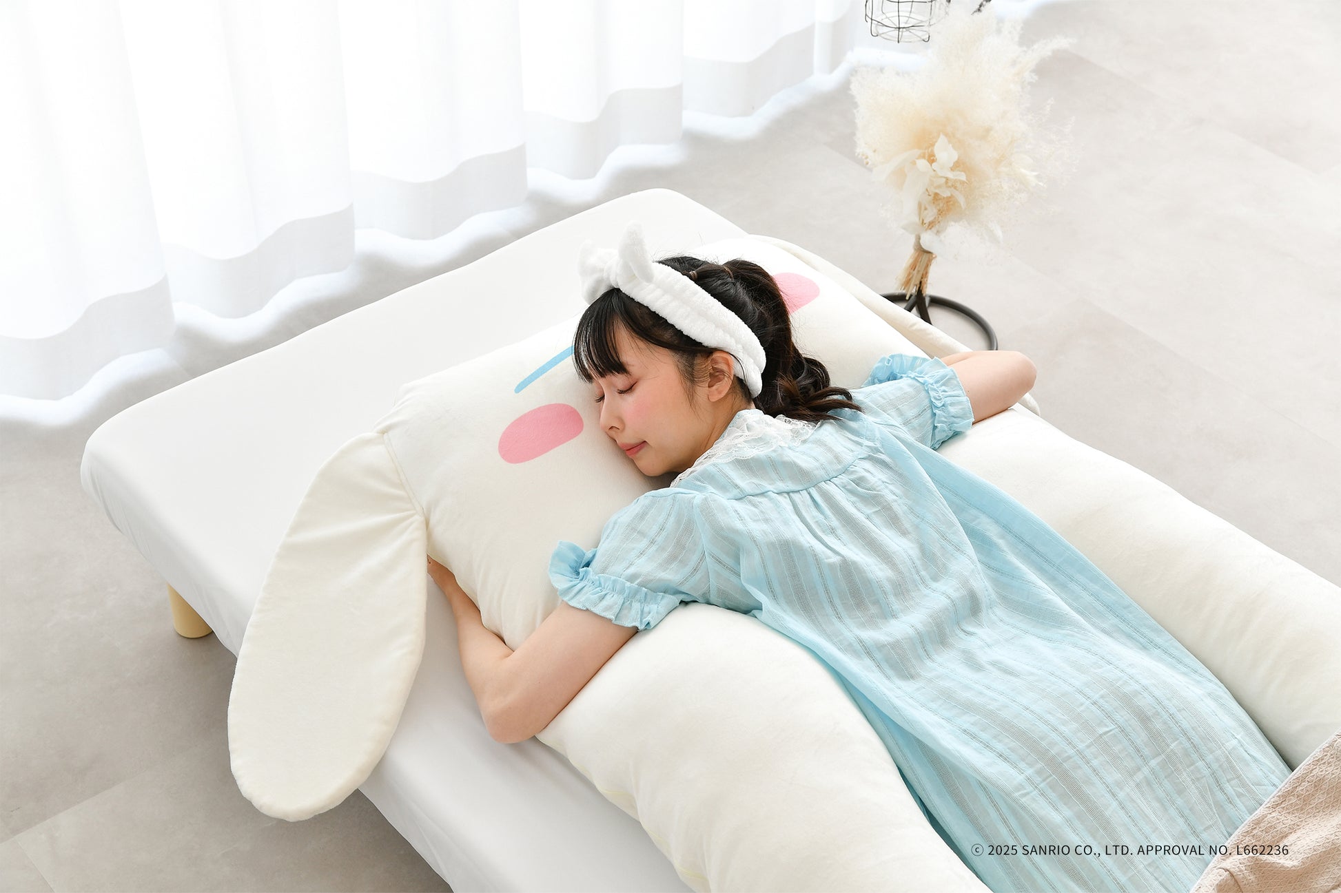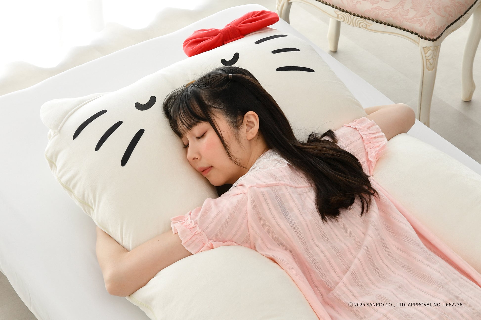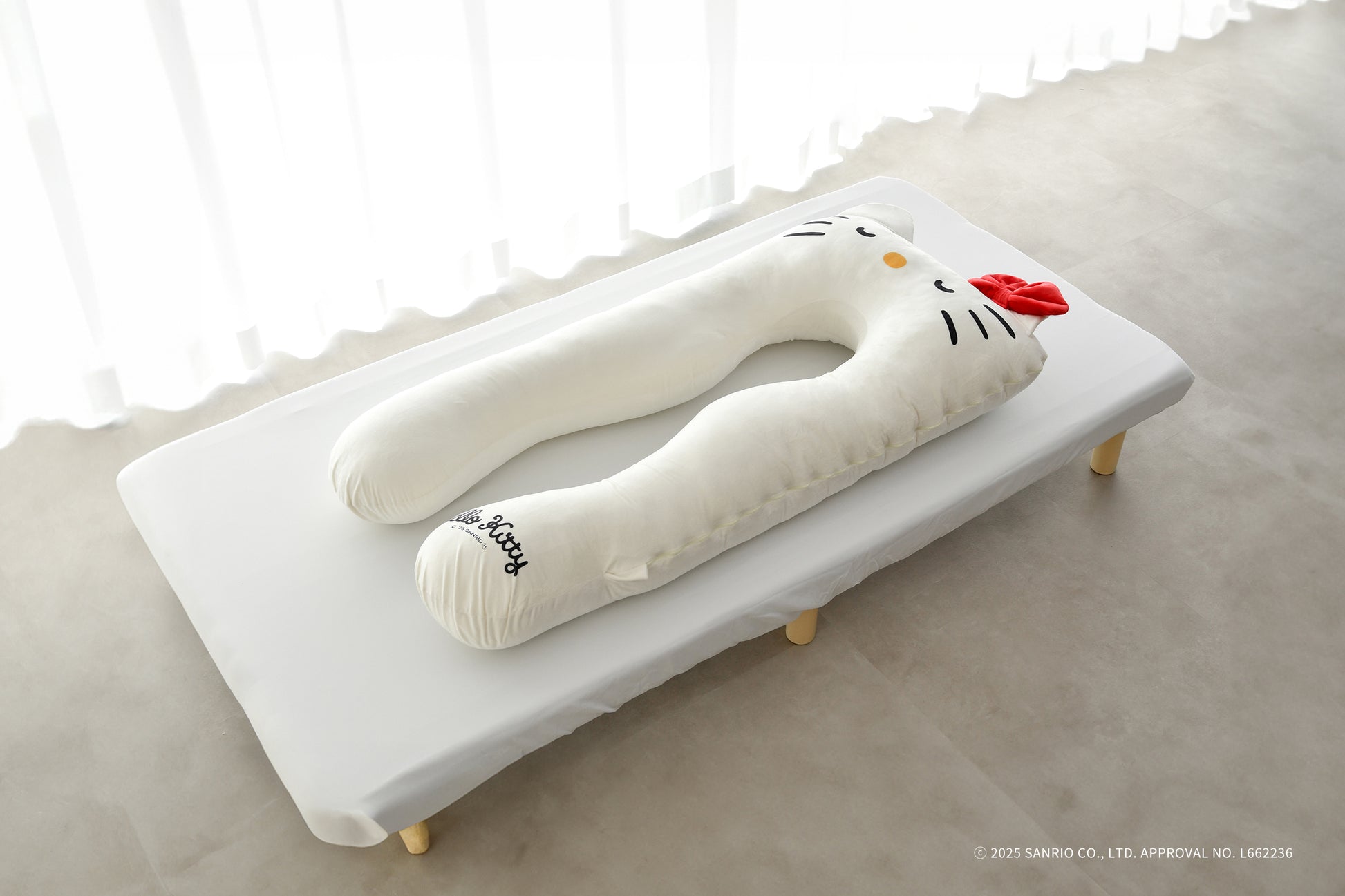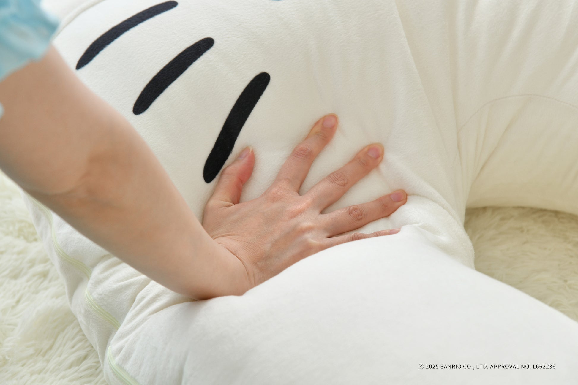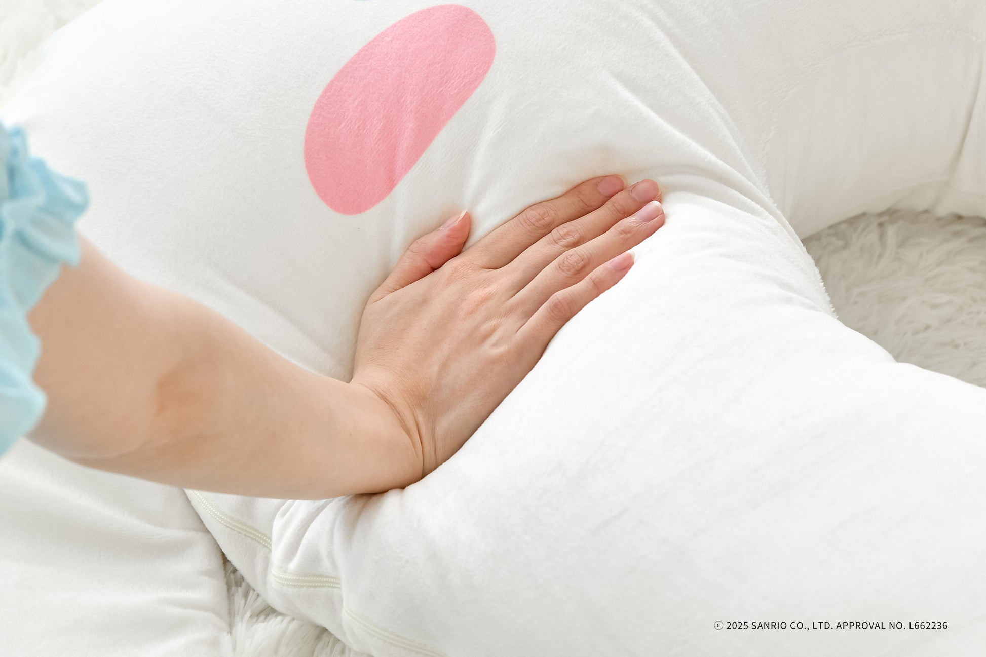 思わず頬ずりしたくなるような、なめらかな生地のカバーを採用。キャラクターのかわいらしいポイントである、ふっくらと立体的なリボンや耳も忠実に再現しており、愛らしさを引き立てています。
